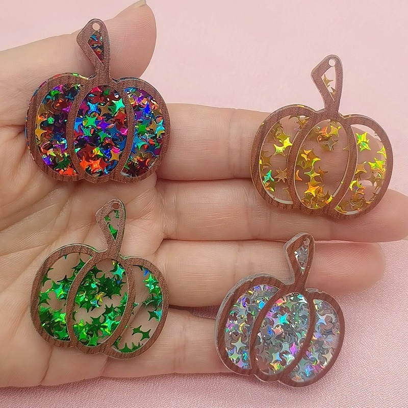クロスボーダー秋ハロウィンクリエイティブカボチャウッドインレイアクリルグリッタースパンコール中空ファッション DIY ジュエリー