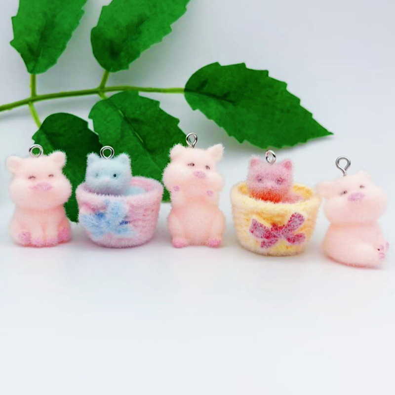 新しい樹脂植毛立体かわいい小動物猫と豚の装飾品 DIY ジュエリーアクセサリーミニペンダントペンダント