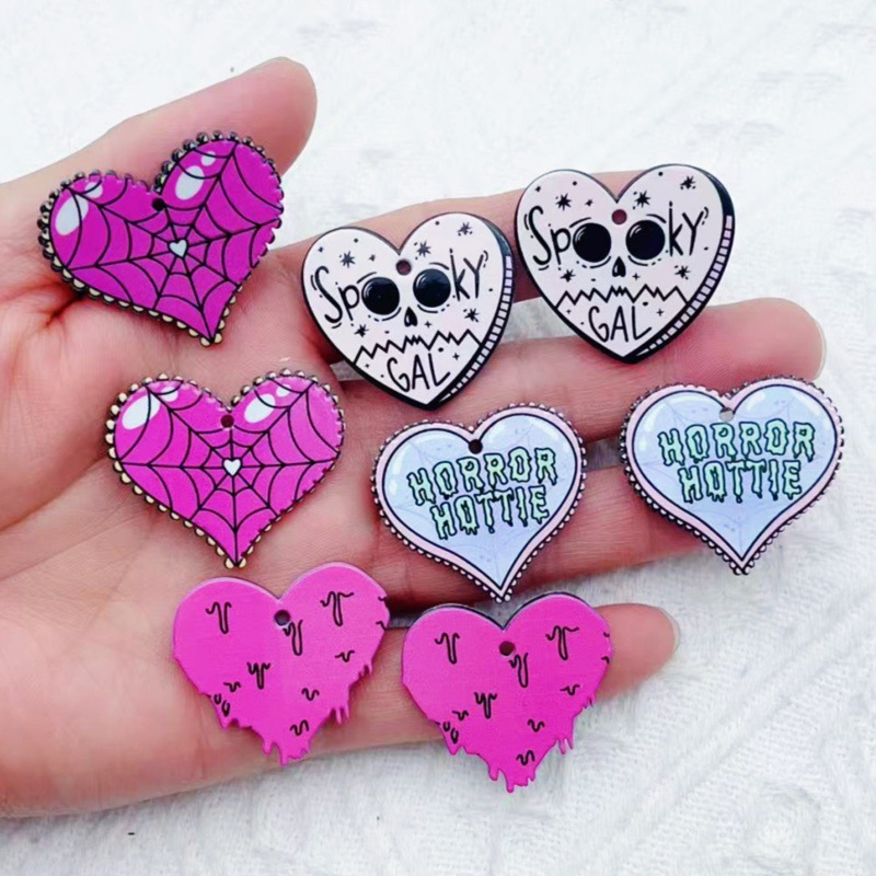 クロスボーダーの人気片面アクリルハロウィーン愛DIYアクセサリー耳飾りネックレスのキーホルダー