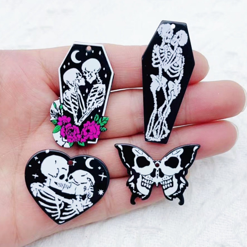 クロスボーダーハロウィンカップルスカル片面アクリルジュエリー DIY ジュエリーアクセサリーバッグキーホルダーペンダント