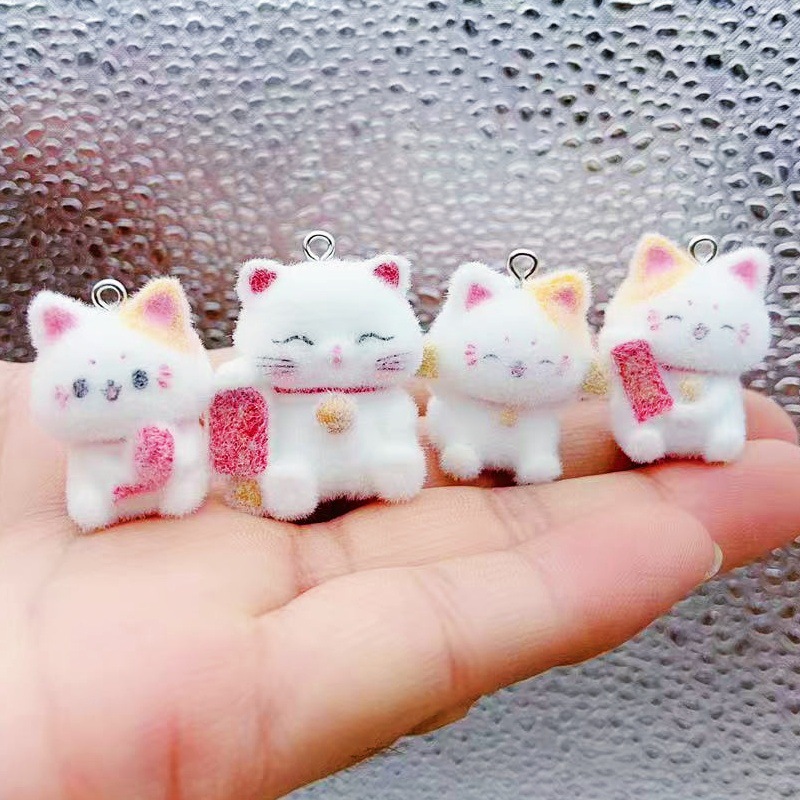 クロスボーダー樹脂植毛立体漫画かわいい白猫ペンダント DIY キーホルダーバッグ装飾品