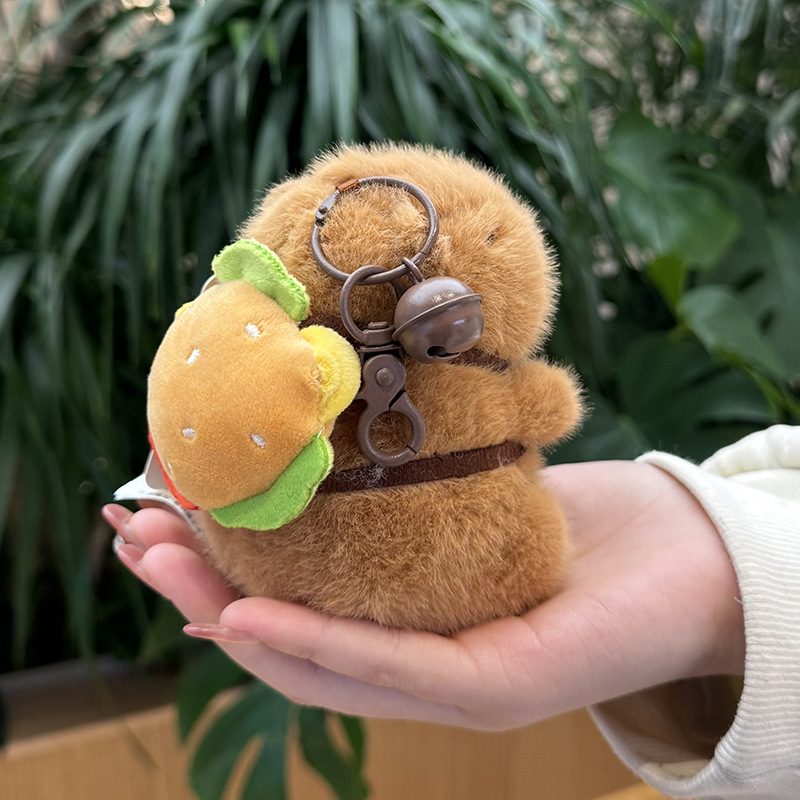 カピバラ水モルモットぬいぐるみぬいぐるみのぬいぐるみを背負ってハンバーガーを食べます。