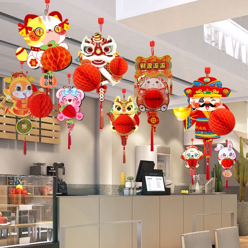 2025 財神新年ペンダントショッピングモール店舗シーンイベント装飾ハニカムランタン雰囲気レイアウトペンダント