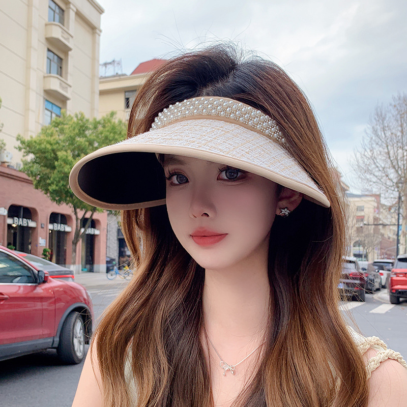 パールヘアフープハット、大きなつばの日よけ帽子、小さな香りの日よけ帽子、つばの広い日よけ帽子、春と夏の屋外中空帽子