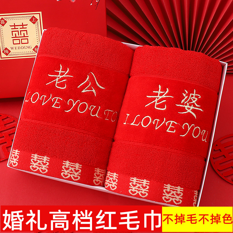 ウェディングレッドタオル純綿ペアギフトボックスギフト大赤色非退色非脱落大人のカップルフェイスタオル