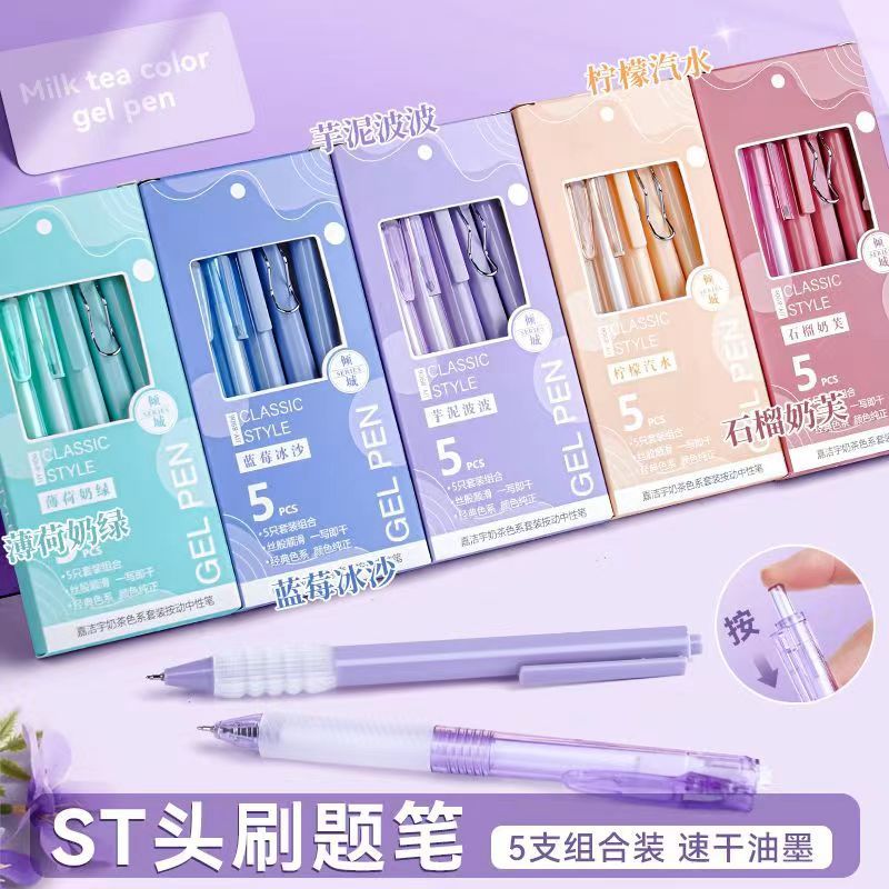 ins 高見え速乾プレスゲルペン パープル文具 小学生 中学生 STペン先 ブラシペン マーベル
