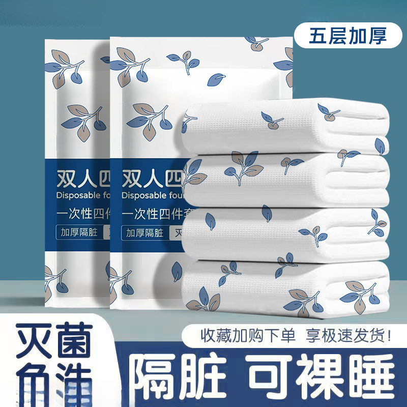 使い捨てベッドシーツ、掛け布団カバー、枕カバー、厚手の4点セット、ダブル旅行用ホテル寝具、防汚ポータブル