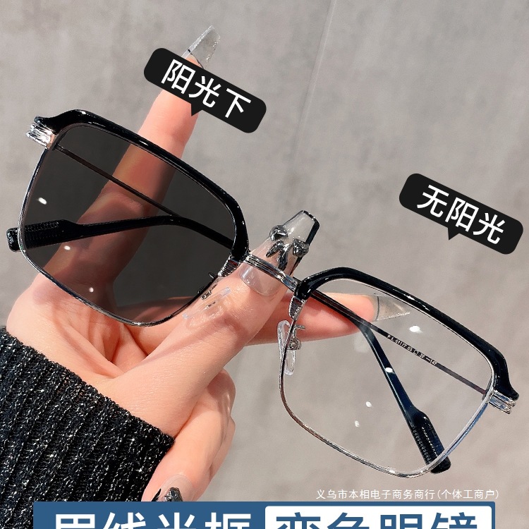 男性用のハンサムなハーフフレームメガネフレーム、自動感光性変色、抗青色光、抗放射線、度付きアイフレームを装備可能