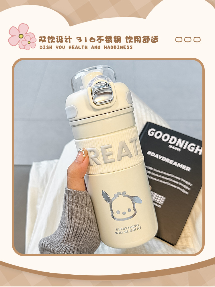 女の子用大容量魔法瓶カップ、女性用シンプル316ウォーターカップ、2024年新作高価値スポーツダブルストローカップ