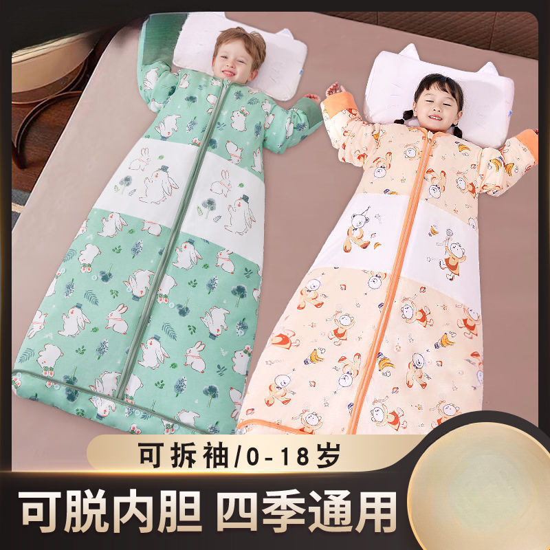 3~6歳の子供用ベビー寝袋、秋と冬、厚みのある取り外し可能なベビーポリエステル綿、春と秋のオールシーズンアンチキックキルトアーティファクト