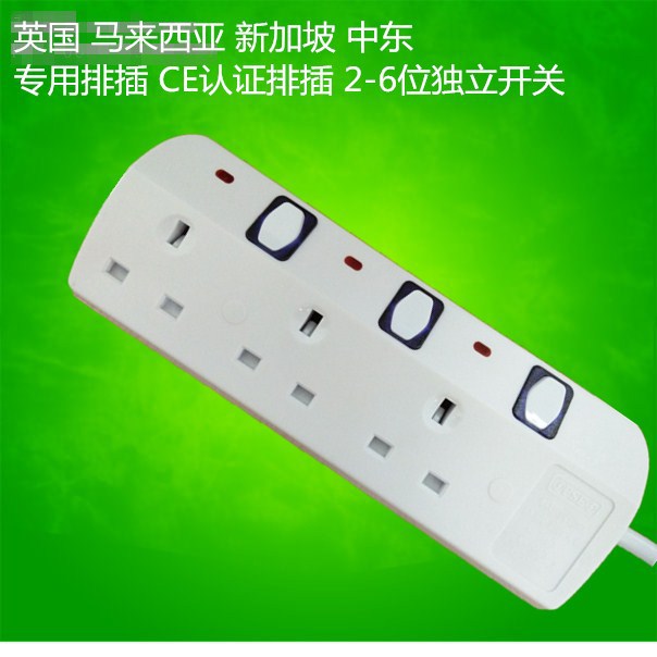 Bsイギリスソケットbs1363イギリス規格ケーブル付き香港ソケット2-6桁独立スイッチ付き