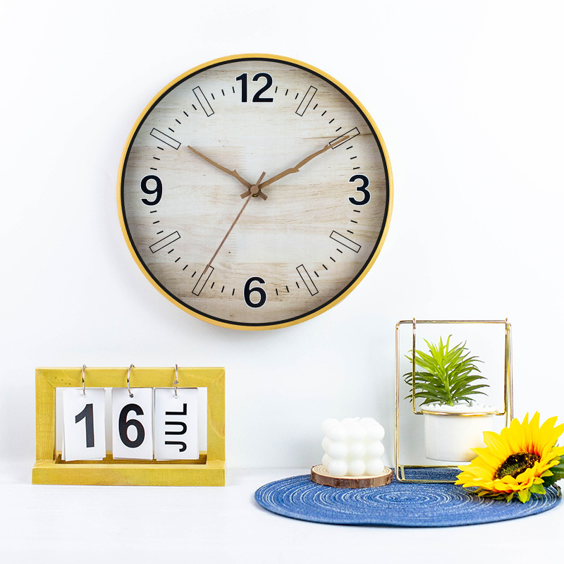 創意多色木板紋シンプルな掛け時計は木目時計の寝室の客間のファッションのクロスボーダー時計の卸売りに似せます。