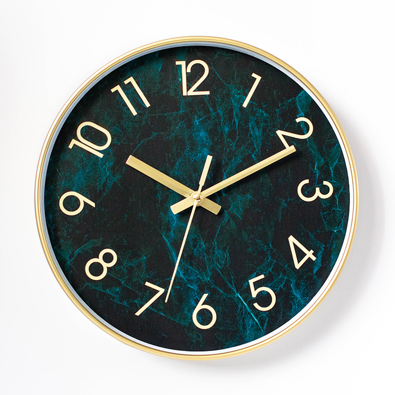 シンプルなグリーン大理石の12インチファッション時計の掛け時計家庭用の軽い豪華なリビングルームの掛け時計の静音時計