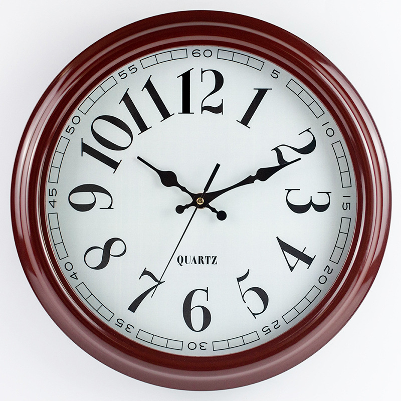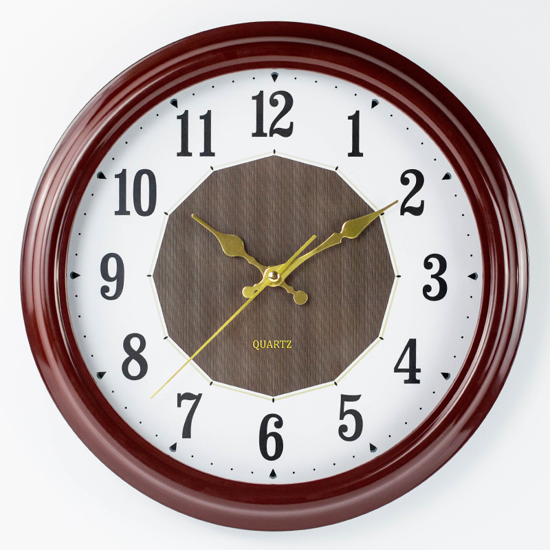 赤褐色の軽い贅沢なアイデアの掛け時計のレトロでシンプルな時計の客間のプラスチックの掛け時計の北欧の寝室の石英の時計の33cm