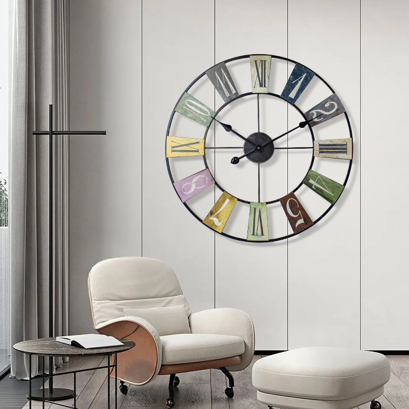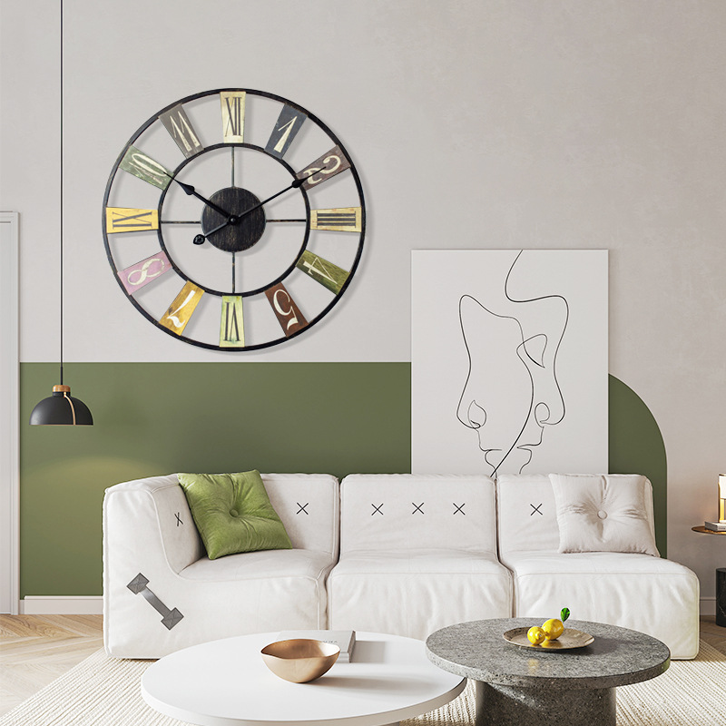 軽豪華現代静音時計北欧創意掛け時計ファッションリビング玄関家庭用芸術鉄芸掛け時計