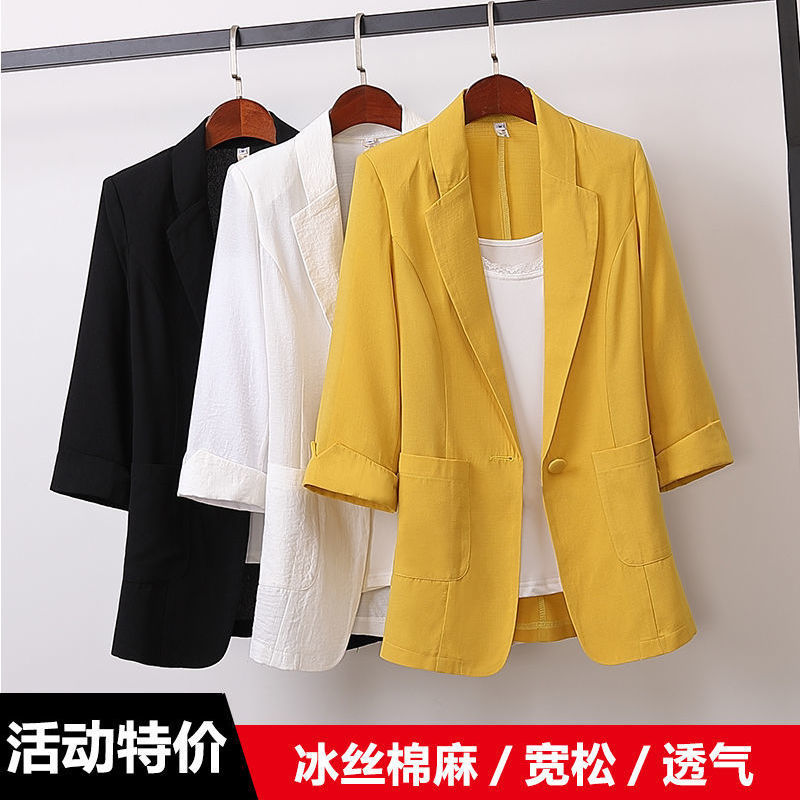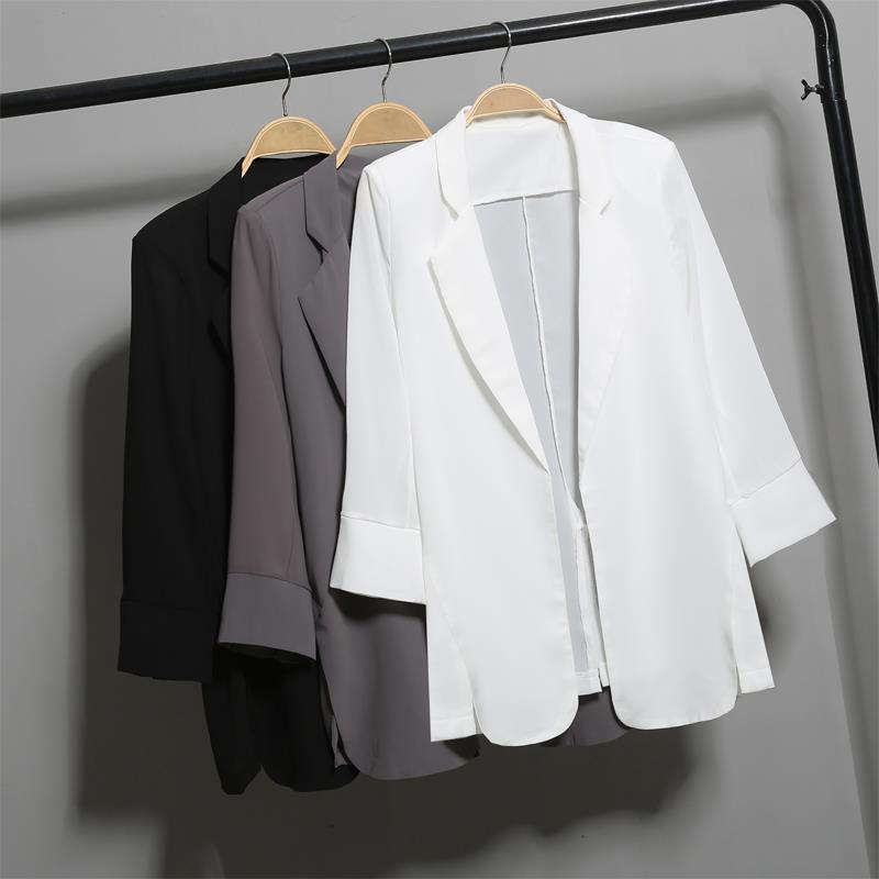 女性用ショートサマースーツジャケット韓国風スリムフィット大きいサイズ七分袖薄手カジュアル日焼け止めトップ