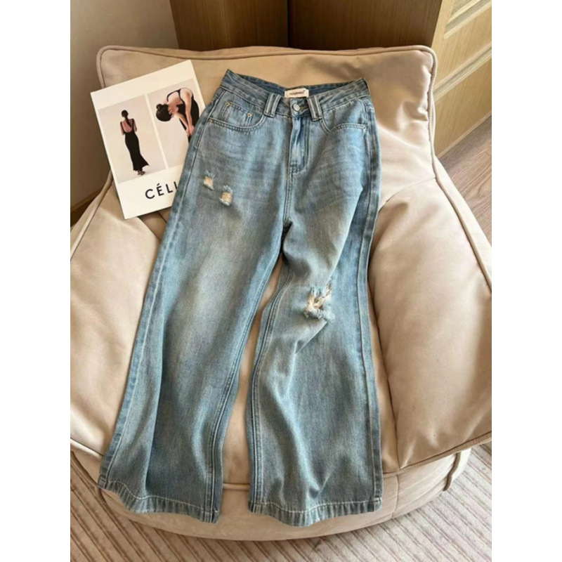 女性のための夏の薄い9点ストレートレッグリップドジーンズ2025新しいホットスタイルルーズで多用途なカジュアルワイドレッグパンツ