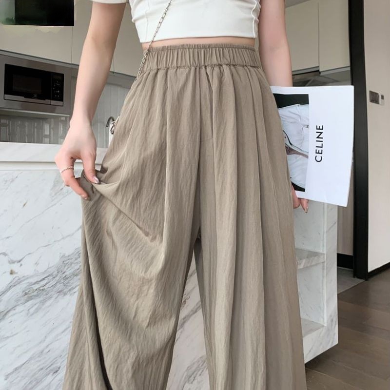 女性用アイスシルクワイドレッグパンツ2025ハイウエストルーズ夏薄いフロアレングスカジュアルパンツ9点パンツストレートパンツ