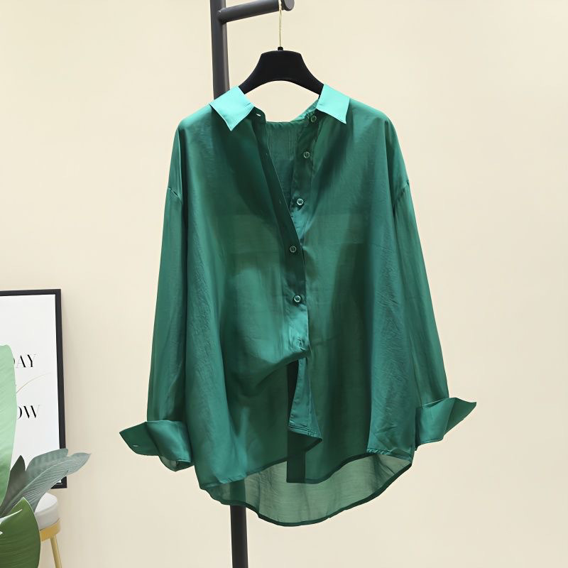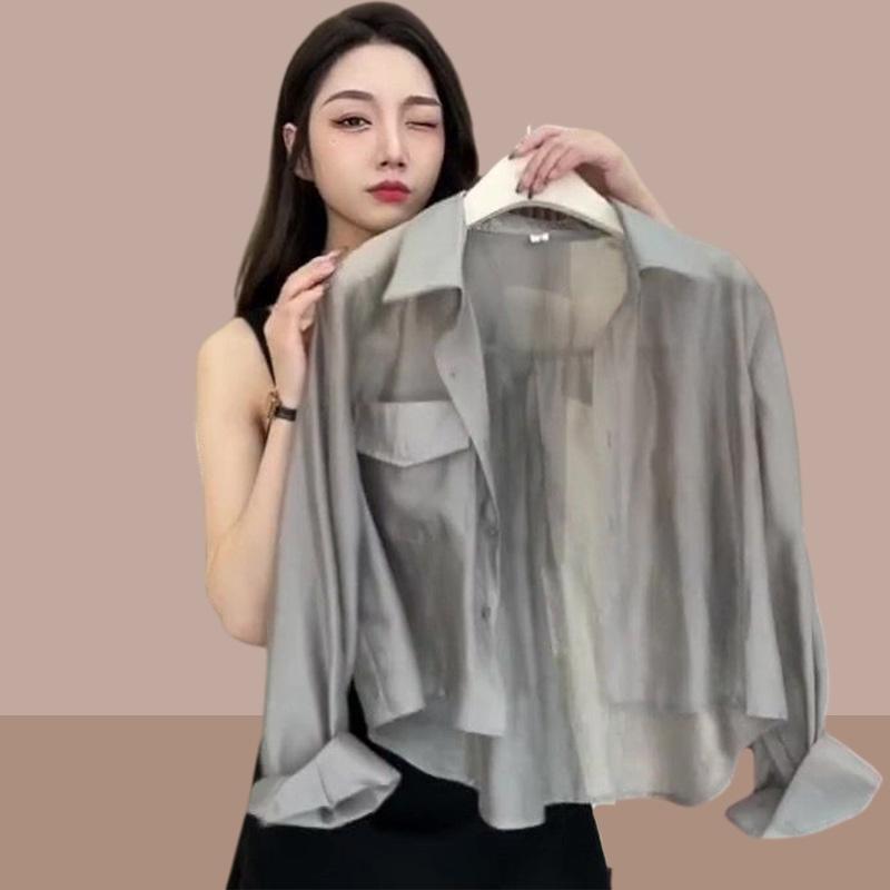 外着垂感天糸シャツ女性薄手春夏韓国版ゆるいカジュアル薄手シャツ長袖日焼け止め上着