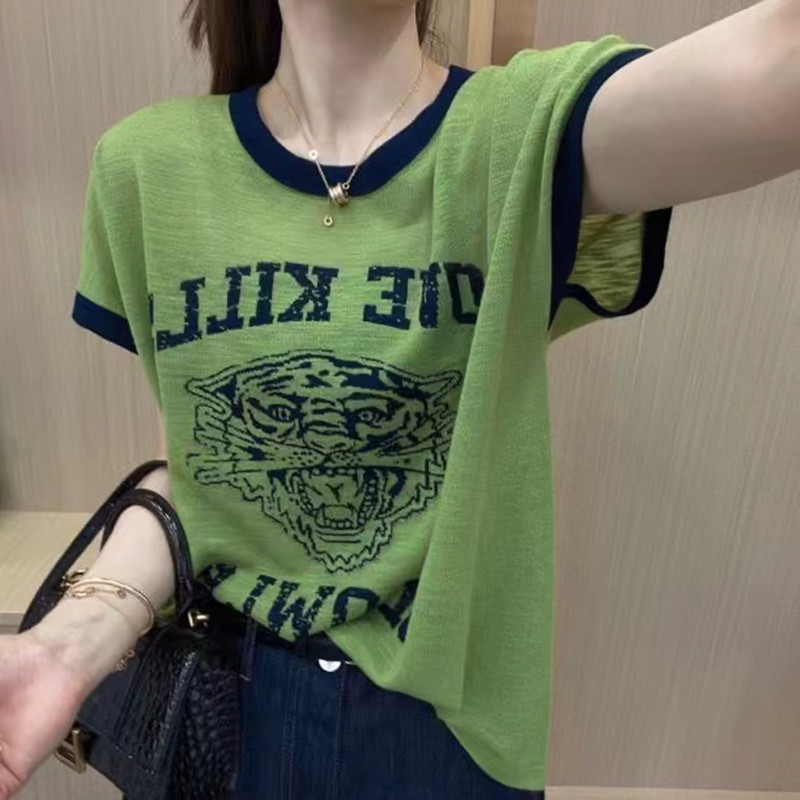 100% 無毛玉 Tシャツ 2025 夏のファッションレタープリントルーズ半袖レディースファッショナブルで多用途な痩身トップ