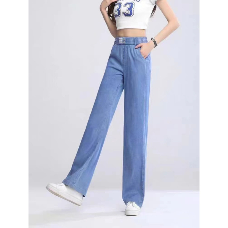 テンセルジーンズレディース夏薄手2025新作ハイウエストルーズワイドレッグドレープアイスシルクカジュアル9点パンツ