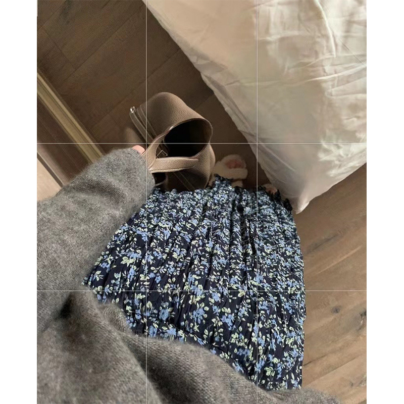 花柄スカート 2025 春夏新作シフォンプリントミドル丈 A ライン小ぶりフレッシュスリムロングスカート