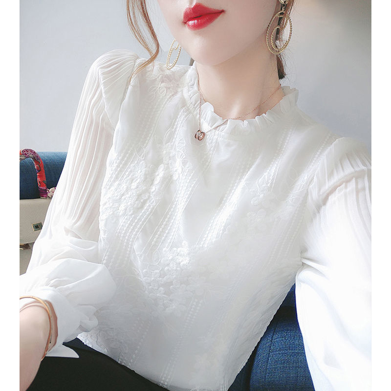 Xiaoxiangfeng パフスリーブシャツ女性の秋と冬フレンチレディハーフタートルネックトップ宮殿スタイルレースボトムシャツインナー