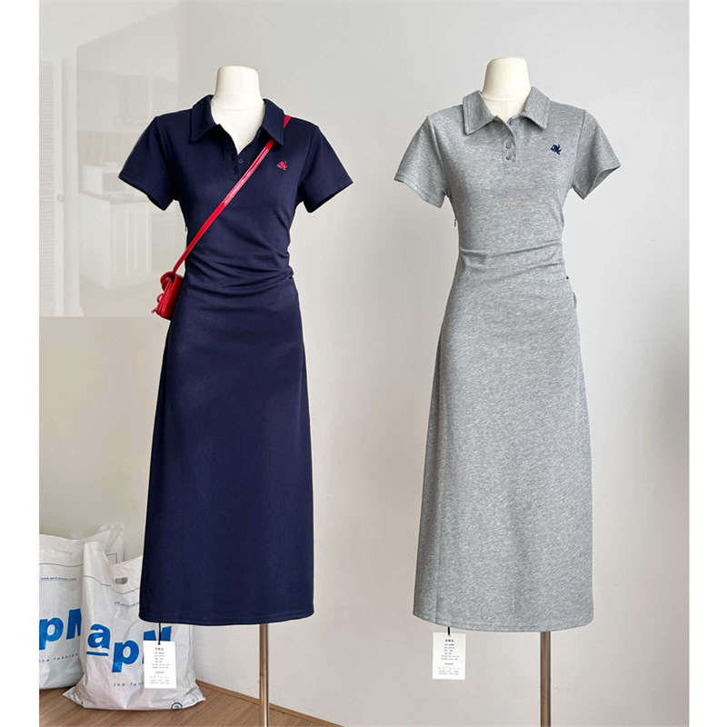 Polo襟純綿半袖tシャツワンピース