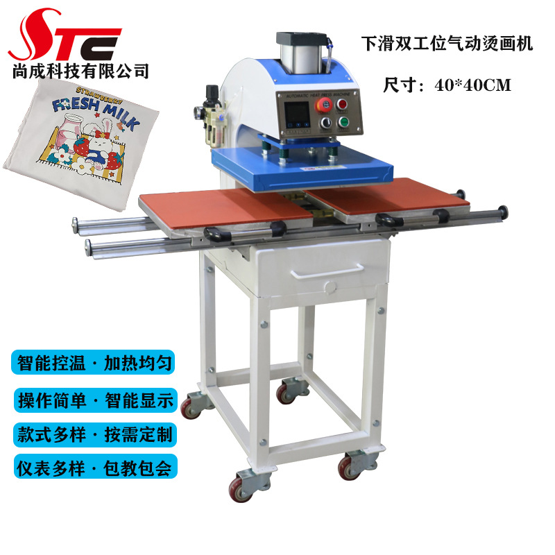 STC 自動デュアルステーション熱プレス機 Tシャツ印刷熱プレス機 40x40 空気圧デュアルステーション熱転写機