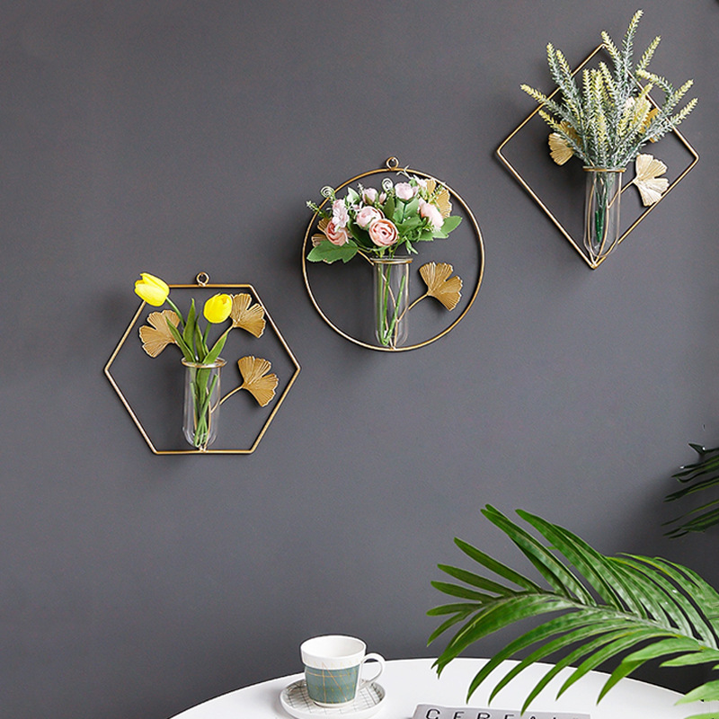 イチョウの葉の鉄の芸の壁掛け式のガラスの水培のレストランの壁面は家の背景の生け花の水培の装飾品を掛けます。