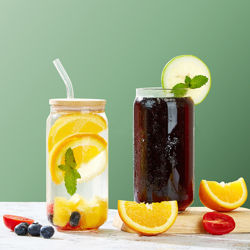 ネット赤単層グラスと竹蓋とガラス透明ストロー夏と牛乳ジュースコーヒーコーラ