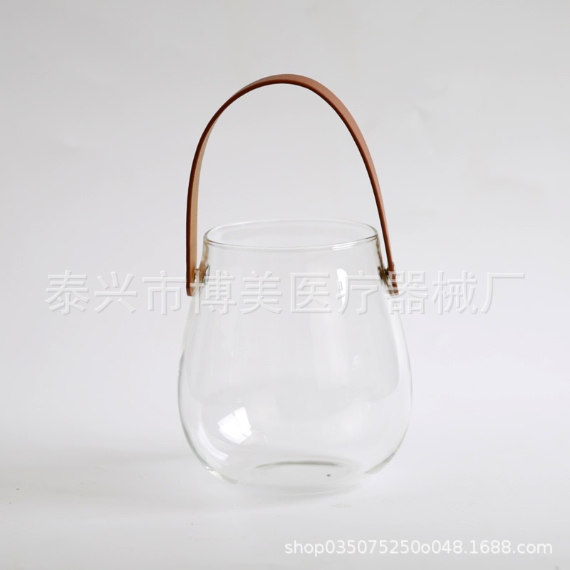 創意家庭北欧創意皮革手提げガラス花瓶水培植物花器グラス乾いた花工芸