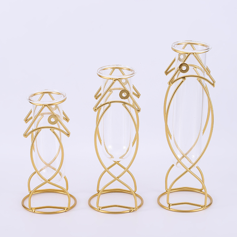 北欧の鉄芸の金色の花瓶の置物の客間の口径の50*60は辺の水をひっくり返して試験管の丸い底の平の生け花の管を育成します。