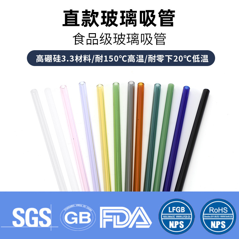【博美】メーカー透明ガラスストロー紙箱セットカラー耐熱ミルクティーストロー8*1.5*200