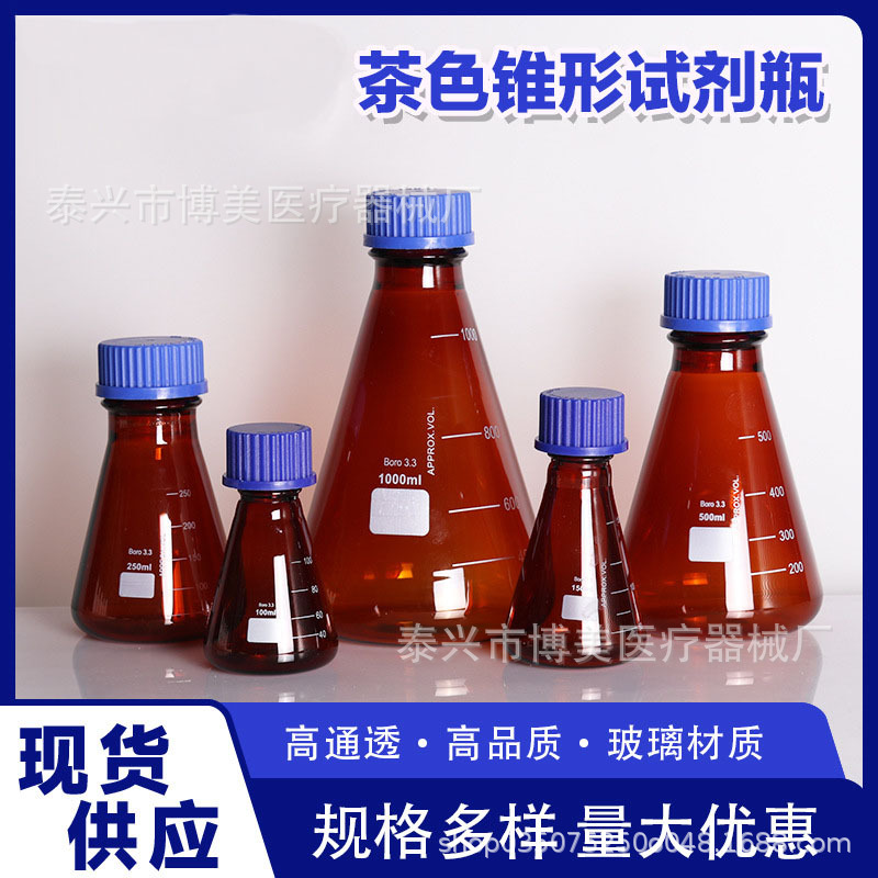 テーパー遮光青蓋試薬瓶100/200/500ml化学実験室スケールナット茶色試薬瓶