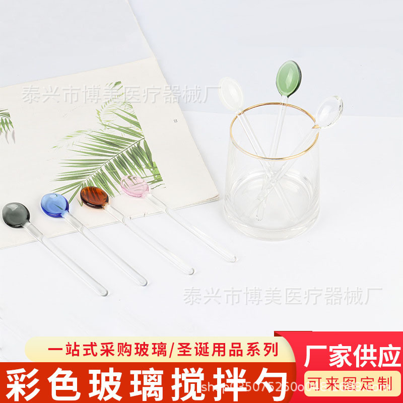 メーカー直販環境保護高ホウケイ酸ガラススプーンカラーかわいいガラススプーンコーヒースプーン牛乳スプーン