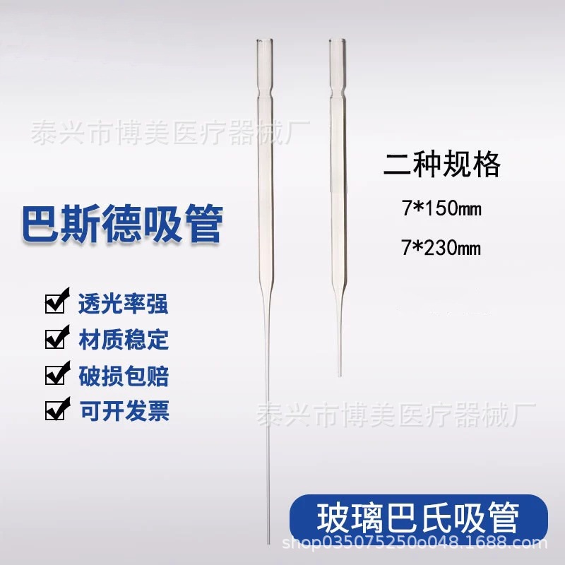 メーカー卸売ガラスパスツールストローガラススポイトガラスストロー7*150 230mm