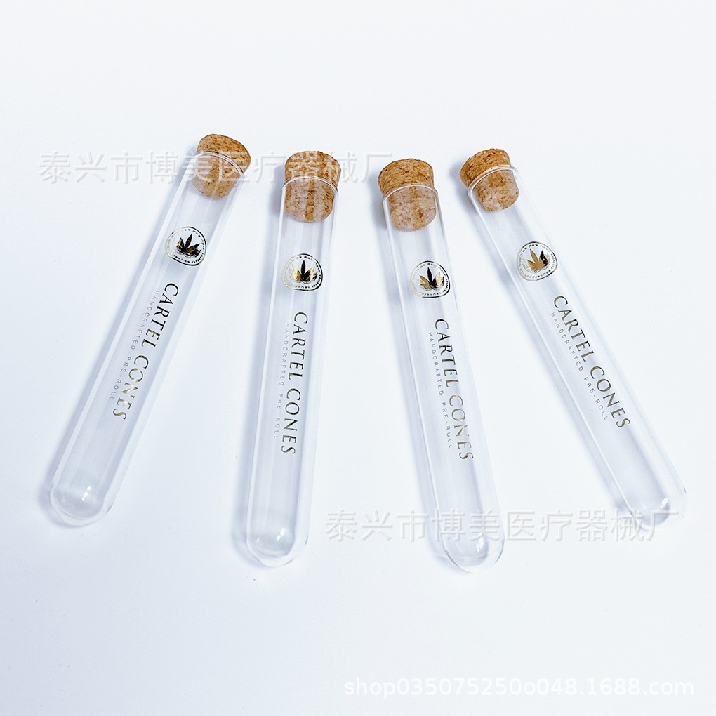 【博美】メーカー直供ガラス印刷試験管ガラス丸底にロゴ付き箔押しと木栓プラスチック
