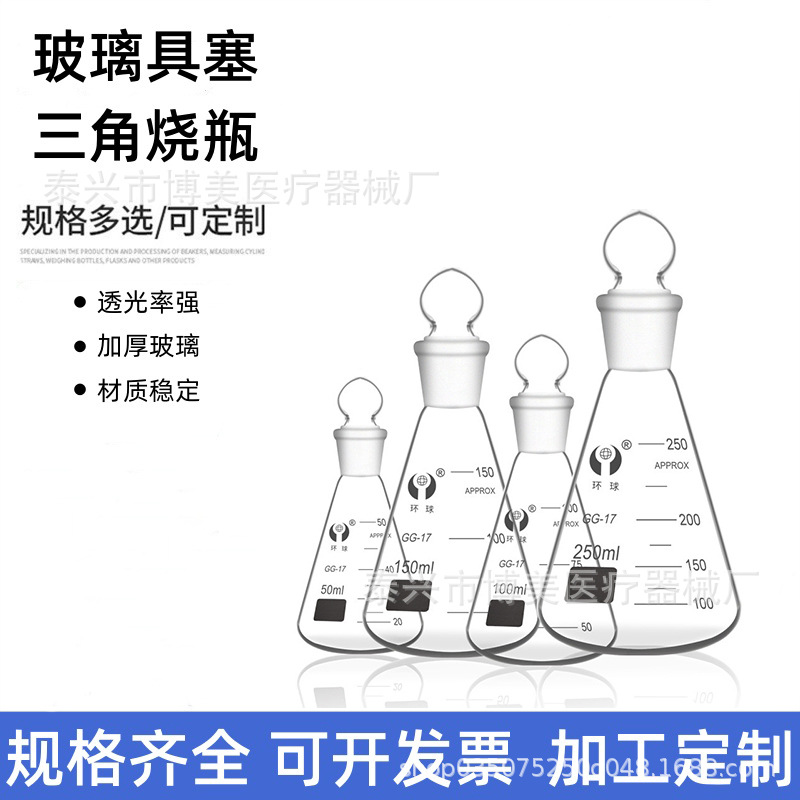 【博美】栓ガラス三角ビーカー100ml 250ml 500ml 1000mlガラステーパーボトル