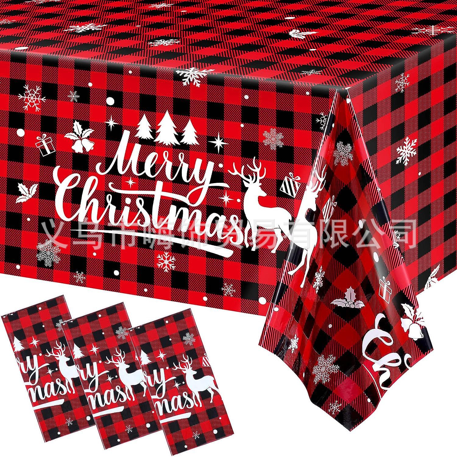 クリスマスおめでとう黒赤格子テーブルクロス使い捨てクリスマス雪花テーブルクロス装飾クリスマスパーティー雰囲気テーブルクロス
