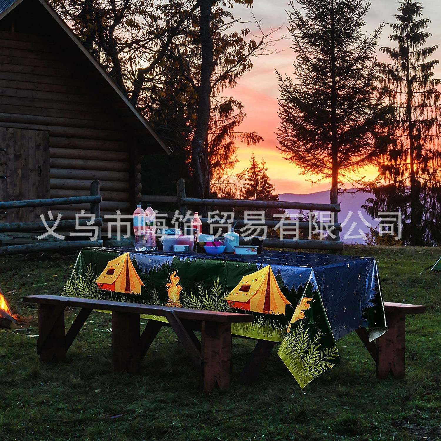 キャンプパーティーのテーマテーブルクロス使い捨てpeテーブルクロス装飾キャンプ屋外ピクニック徒歩誕生日パーティーテーブルクロス