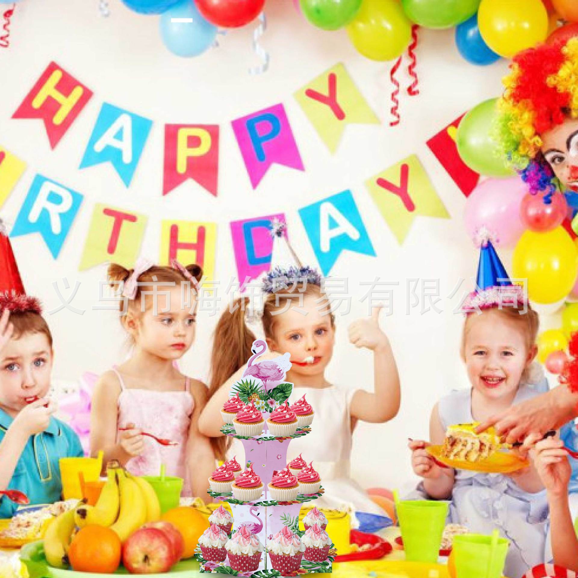 クロスボーダーピンクフラミンゴ紙コップケーキ棚ハワイテーマ装飾子供誕生日パーティー紙コップケーキ棚
