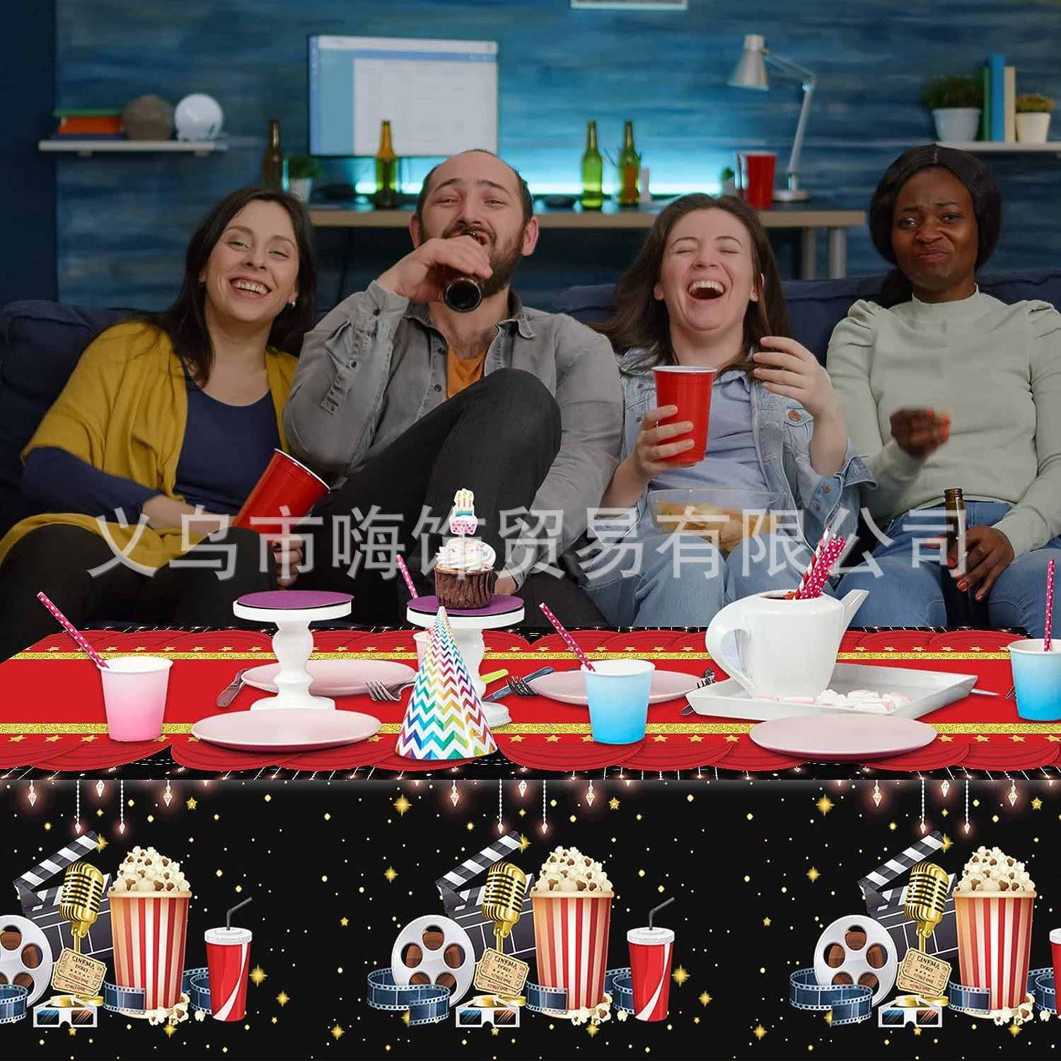 国境を越えたハリウッド映画のテーマ使い捨てpeテーブルクロス装飾映画の夜レッドカーペット誕生日パーティーテーブルクロス