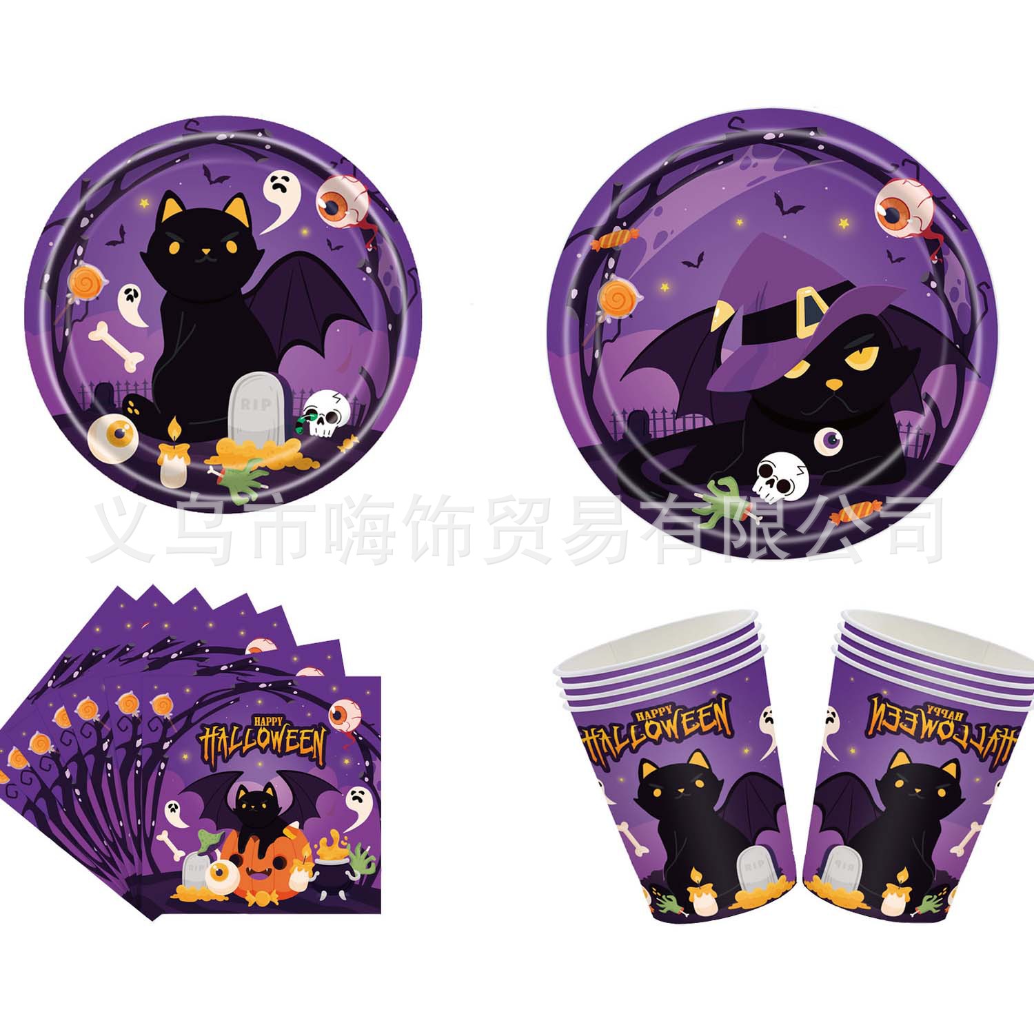 国境を越えた黒猫ハロウィーンをテーマにした使い捨て紙皿ペーパータオル紙コップテーブルクロス装飾ハロウィーンパーティー場
