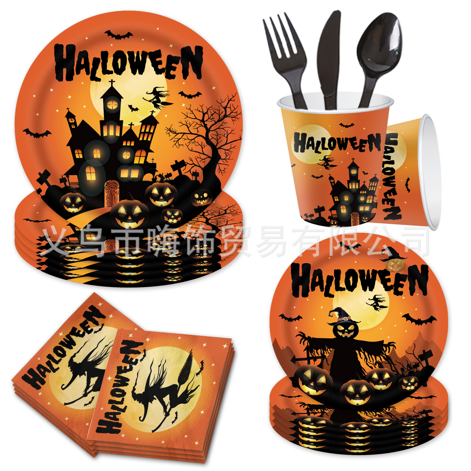 国境を越えたハロウィーンをテーマにした使い捨て紙皿ペーパータオル紙コップテーブルクロス装飾ハロウィーンパーティーの雰囲気食器