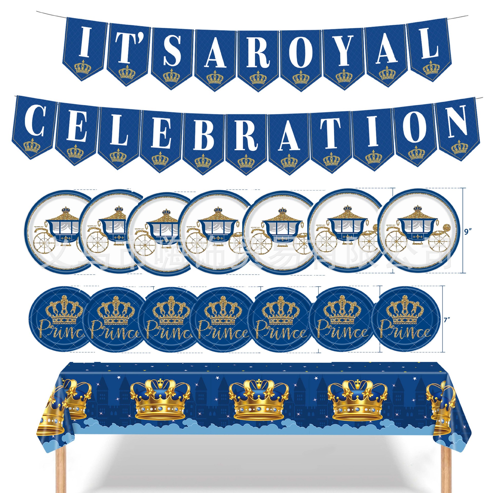 クロスボーダー新しい子供诞生日パーティー用品クラウン王子纸コップティッシュペーパー皿テーブルクロスフラッグカトラリーセット