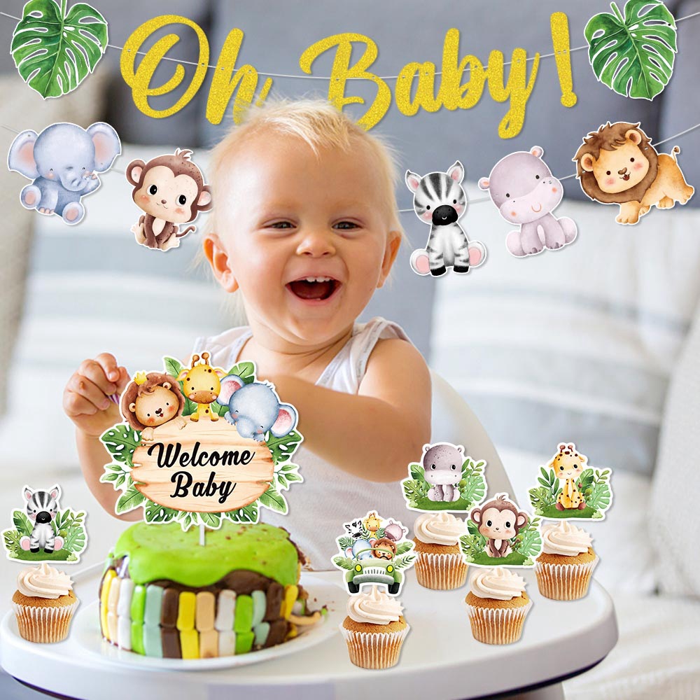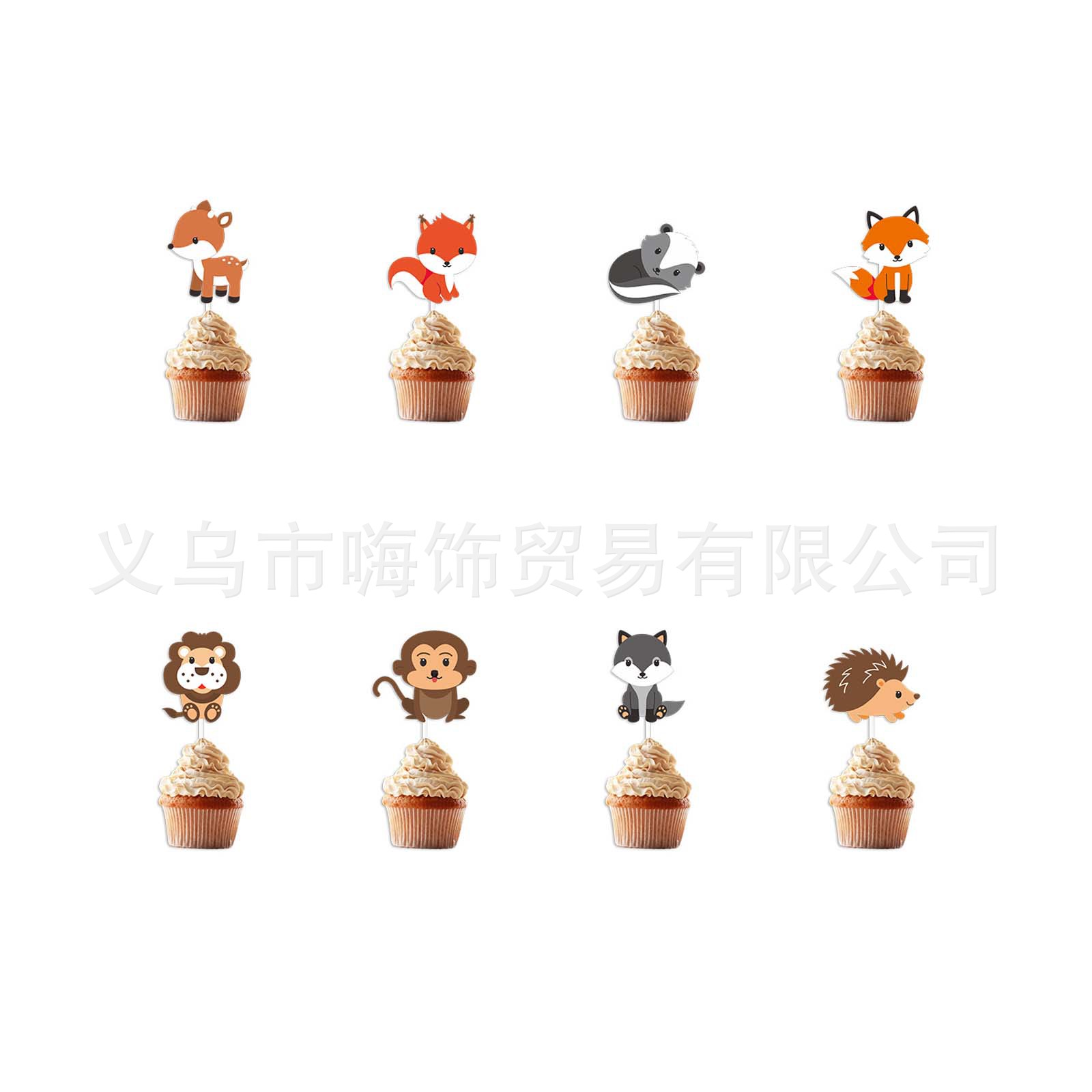 クロスボーダー8個入りジャングル動物テーマパーティー装飾ケーキイラスト子供誕生日パーティーカップケーキイラスト