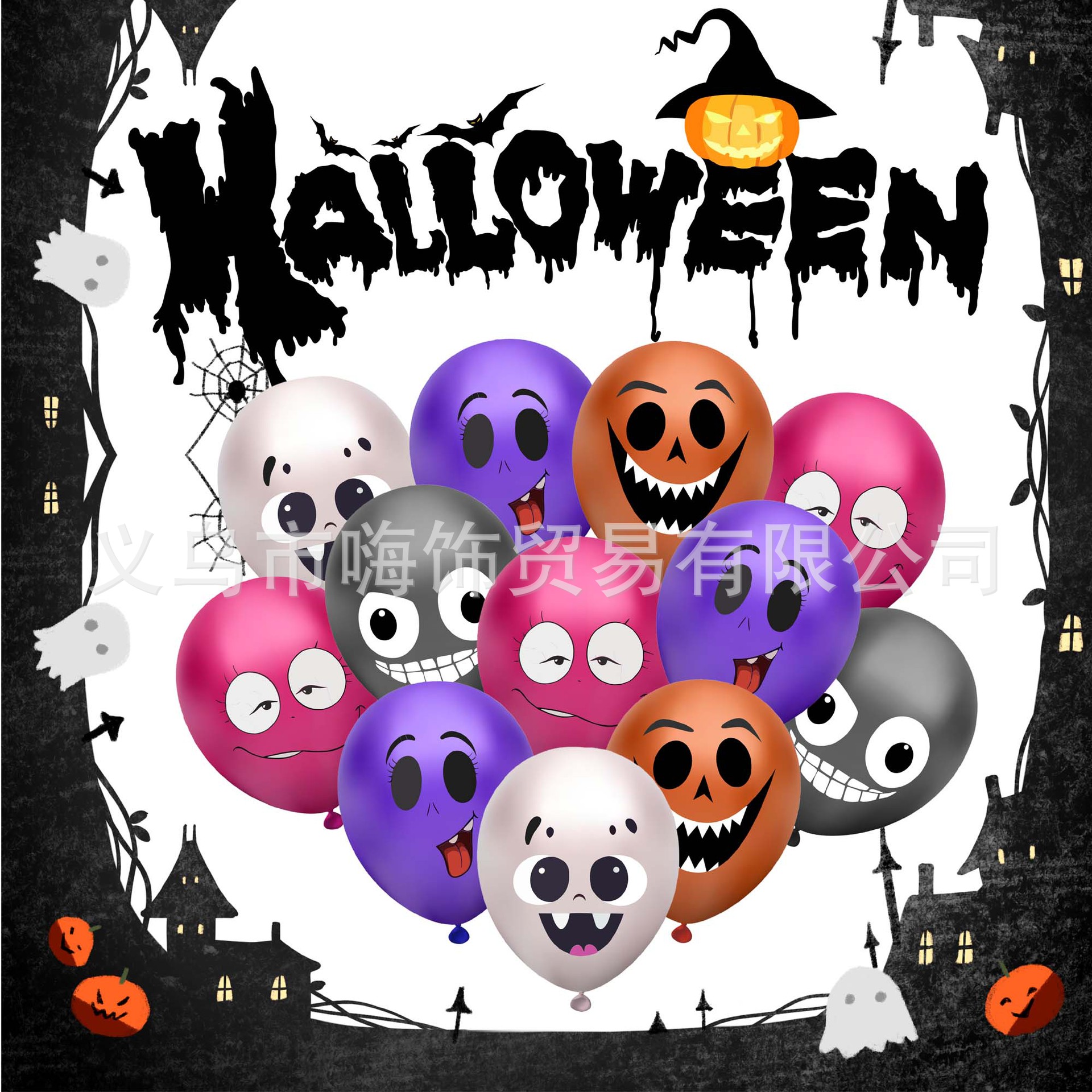 国境を越えたハロウィーンパーティーの表情がおかしい12インチ印刷ラテックス風船装飾ハロウィーン鬼節場風船