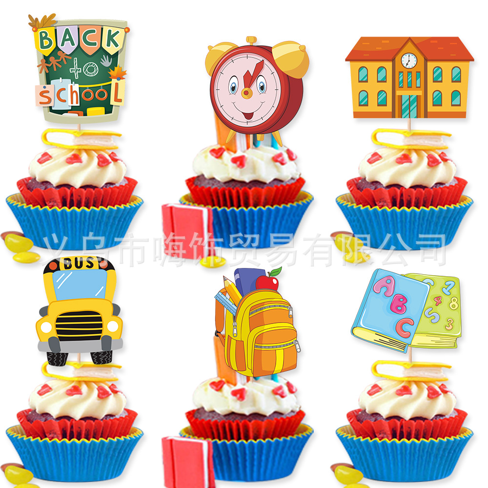 国境を越えた入学ケーキの小さな挿し木と大きな挿し木は幼稚園の学校の大学入学パーティーのケーキのプラグインを飾っている
