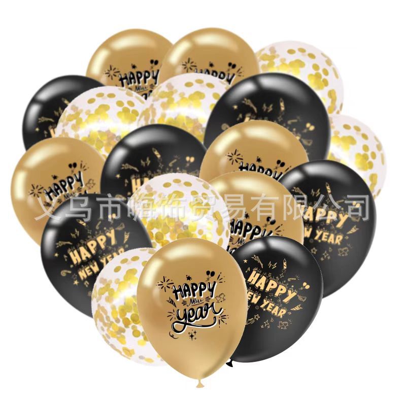 国境を越えた12インチ黒金テーマ新年金色のスパンコールラテックス風船happy new yearパーティー装飾